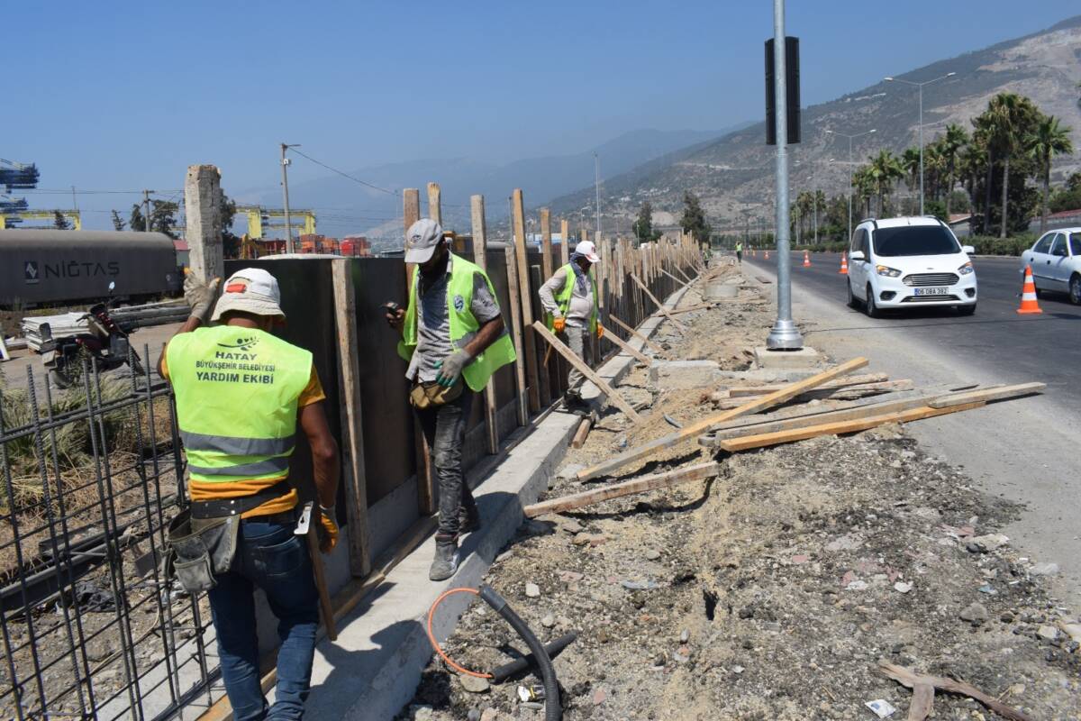 Öte yandan, Adana istikametinden İskenderun’a giriş yapan araçların kullandığı güzergahta, Liman B Kapısı ile Tayfur Sökmen Bulvarı arasında yer alan ve yol genişletme çalışmaları tamamlanan alanda beton koruma duvarı inşasında sona yaklaşıldı. Yaklaşık 1 kilometre uzunluğundaki duvar, hem trafik güvenliğini sağlamaya hem de bölgenin genel görünümünü düzenlemeye yönelik olarak inşa ediliyor.