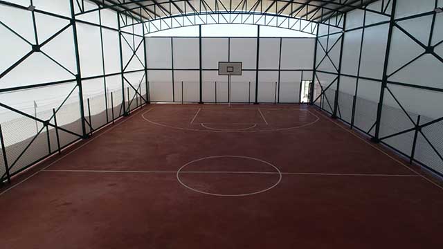 Çelik konstrüksiyon imalatı yapılarak, sandewhich panel ile basketbol sahasının üzerini kapatan HBB Fen İşleri Daire Başkanlığı ekipleri, basketbol sahasına ait zeminde beton ile yüzey sertleştirici uygulayarak çizgileri yeniledi.