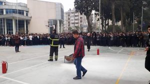 Yangın öncesinde alınması gereken tedbirlerden bahseden eğitmenler, yangın anında doğru davranış şekilleri, yangına müdahale teknikleri, yapılması gerekenler ve yangın sonrasında yapılacaklar hakkında öğrencileri bilgilendirdi. Ayrıca okulun bahçesinde temsili olarak yangın olayı gerçekleştirilerek itfaiyecilerin yangına müdahalesi canlandırıldı.