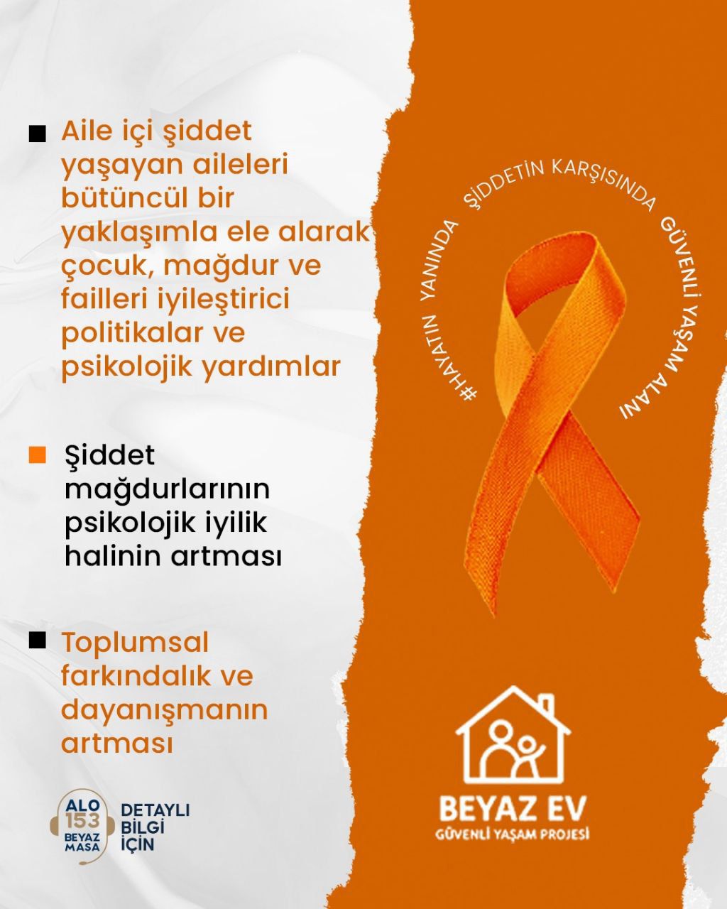 Proje; aile içi şiddet mağduru kadınlar ve erkekler, fiziksel, duygusal ya da cinsel istismara uğramış çocuklar, şiddet ortamında büyüyen gençler ve tanık travması yaşayan bireyler için özel destek programları içeriyor. Aynı zamanda şiddet uygulayan kişilere yönelik rehabilite edici müdahaleler de sistemin bir parçası olacak.