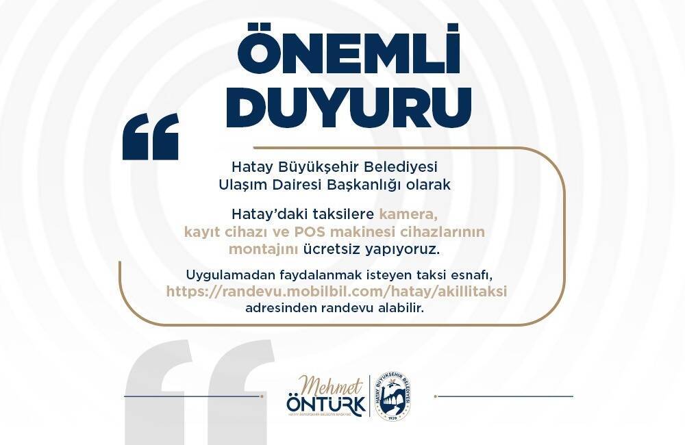 Projeden yararlanmak isteyen taksi şoförlerinin, cihaz montajı için https://randevu.mobilbil.com/hatay/akillitaksi adresi üzerinden randevu oluşturmaları gerekiyor. Online başvuru sistemiyle işlemlerin hızlı ve düzenli şekilde gerçekleştirilmesi amaçlanıyor.