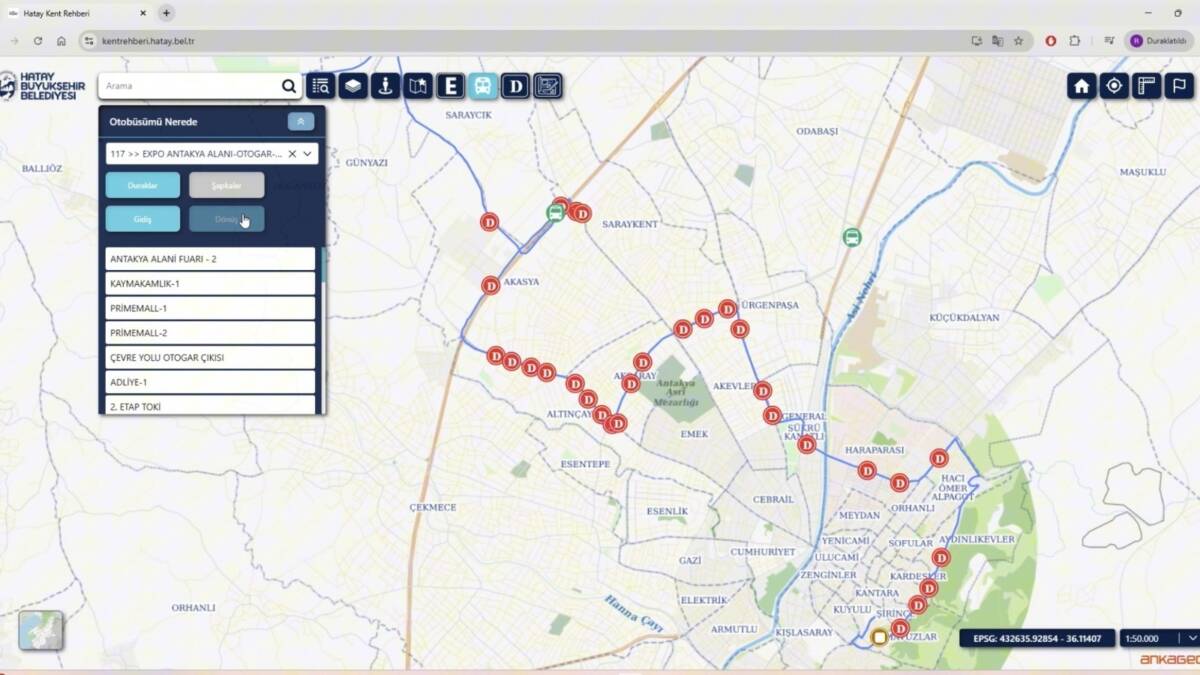 Kent Rehberi içerisinde yer alan “Otobüsüm Nerede” özelliği sayesinde vatandaşlar, kullanacakları otobüs hattını seçerek gidiş ve dönüş yönlerini anında görüntüleyebiliyor. Uygulama, yolcuların binecekleri durağı harita üzerinden net bir şekilde görmesine olanak tanırken, toplu taşımayı daha planlı ve stressiz bir deneyime dönüştürüyor.