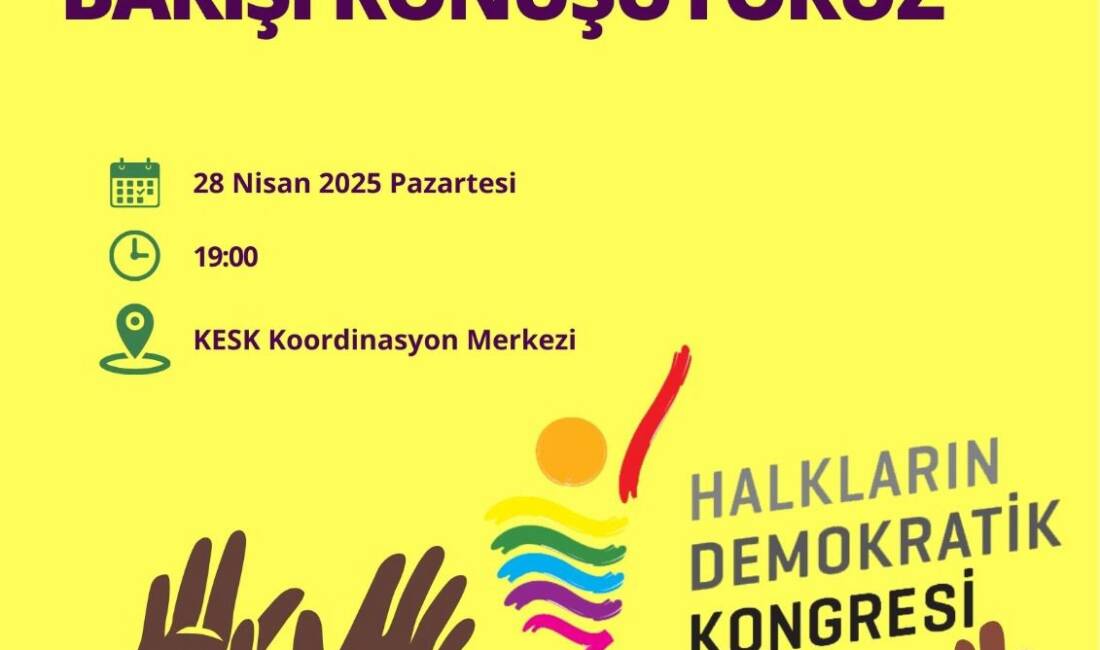 Halkların Demokratik Kongresi (HDK), toplumun geniş kesimlerini bir araya getirecek önemli bir buluşmaya hazırlanıyor. 28 Nisan 2025 Pazartesi günü, saat 19.00’da, “Demokratik Toplum ve Barışı Konuşuyoruz” başlıklı etkinlik KESK Koordinasyon Merkezi’nde gerçekleştirilecek. Katılımcıların aktif olarak söz alabileceği etkinlik, toplumsal meselelerin kolektif biçimde tartışılmasına olanak tanıyacak.