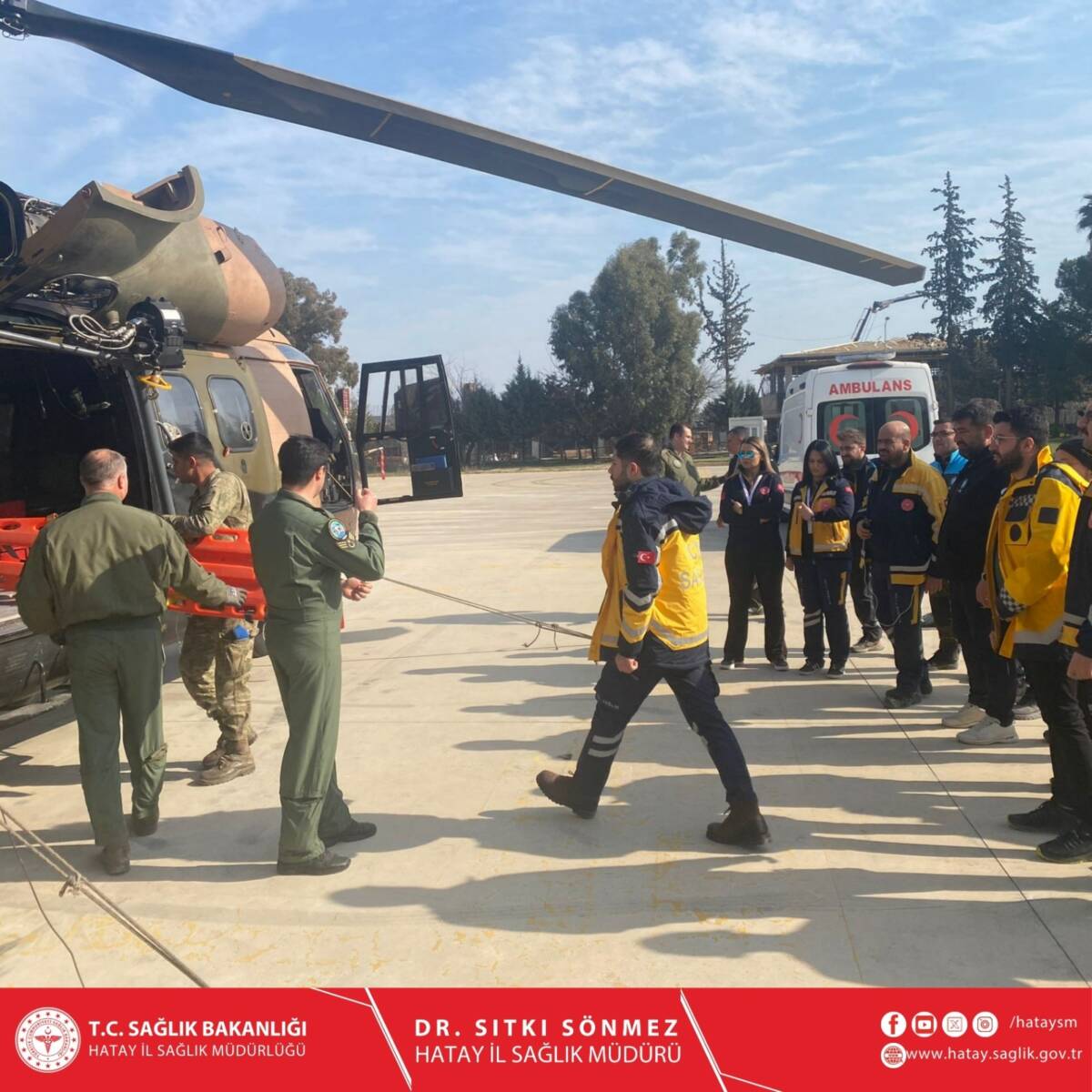 Tatbikat, Hatay İl Sağlık Müdürlüğü Acil Sağlık Hizmetleri Başkanlığı ve İl Ambulans Servisi Başhekimliği tarafından organize edildi. Gerçek bir olay gibi kurgulanan eğitim, sağlık ekiplerinin zorlu koşullarda hızlı ve güvenli hasta tahliye prosedürlerini öğrenmelerini sağladı.