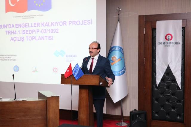 Engellerin insan zihninde oluştuğunu ifade eden İskenderun Ticaret ve Sanayi Odası Başkanı Levent Hakkı Yılmaz ise, “Engelli bireylerin yaşam standartlarının yükseltilmesi ve toplumda meydana gelen ön yargıların bertaraf edilmesi için böyle bir projeye imza attık. Engelli bireylerimiz için öncelikle yapmamız gereken, her durumda pozitif ayrımcılık olurken onların istihdam şartlarının iyileştirilmesidir. Bizler de, bu yolda engelli bireylerle ilişkiler kurulması, engellilerin yaşam standartlarının yükseltilmesi, istihdam olanaklarının arttırılması için böyle bir projeyi İskenderun Teknik Üniversitemiz ile birlikte gerçekleştirdik. Hep birlikte bu projeye destek verelim. En azından İskenderun’da engelleri ortadan kaldıralım diye düşünüyoruz” dedi.
