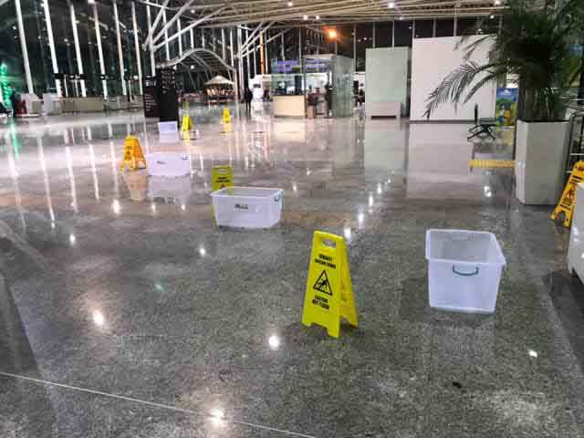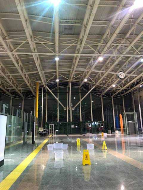Havalimanı terminali çatısından sular yeniden aktı. Şemsiyesiz dolaşmayın!