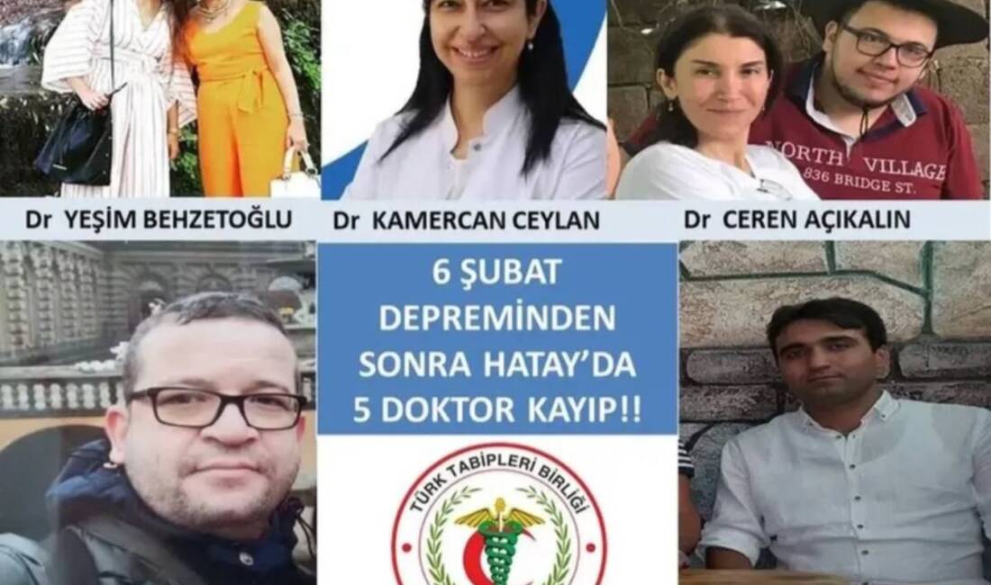“Depremde 63 meslektaşımızı kaybetmenin derin üzüntüsünü yaşıyoruz. Ancak en büyük acımız, meslektaşlarımızdan bazılarına hâlâ ulaşılamamış olmasıdır. Dr. Yeşim Behzetoğlu, Dr. Kamercan Ceylan, Dr. Ceren Açıkalın, Dr. İbrahim Arıcı ve Dr. Yusuf Hasırcı’nın cenazelerine erişemedik. Hepimizi derinden yaralayan bu kayıpların hatırasını yaşatacağız. Hepinizi Özledik!!!””