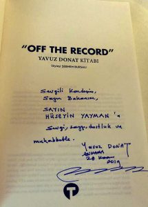 Gazeteci Yavuz Donat’ın meslekteki 56 yılını anlattığı “Off The Record” kitabının okuyucularla buluşmasına vesile olan, ATV Ankara Temsilcisi Şebnem Bursalı’nın içeriğe dair ifadesi ise şöyle olmuştu: