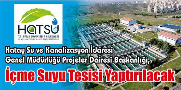 Hatay Su ve Kanalizasyon İdaresi Genel Müdürlüğü Projeler Dairesi Başkanlığı, içme suyu tesisi yaptıracak.