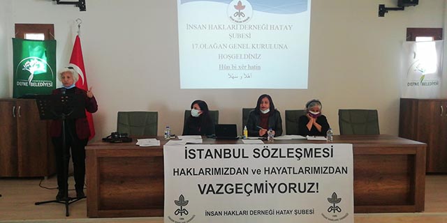 İnsan Hakları Derneği (İHD) Hatay Şubesi’nin 17.Olağan Genel Kurulu, geçtiğimiz Cumartesi günü yapıldı, Servet Üstün Akbaba yeniden başkan oldu. Saat 11.00 ‘de, Akdeniz Mahallesi’ndeki Defne Evi’ nde pandemi kuralları çerçevesinde gerçekleştirilen kongreye; İHD Akdeniz Bölge Temsilcisi Avukat Yasemin Dora Şeker, İnsan Hakları Dernek üyeleri, siyasi partiler ve sivil toplum kuruluşları, demokratik kitle kurumları, sendika temsilcileri katıldı.