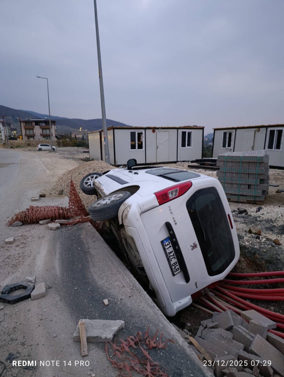 Hatay’ın Antakya ilçesinde, deprem konutu inşaatı ve beton santrali yakınında bulunan üstü açık kanala bir otomobil düştü. Kazanın, Gülderen TOKİ Konutları önünde meydana geldiği bildirildi.