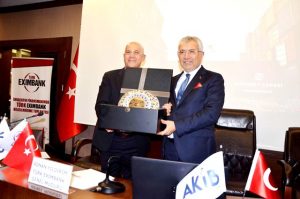 Sunumun ardından, ihracatçı firma temsilcilerinin soruları cevaplandırıldı. Sunum sonunda, Türk Eximbank Genel Müdürü Adnan Yıldırım’a, AKİB Koordinatör Başkanı Ali Uğur Ateş tarafından günün anısına plaket takdim edildi.