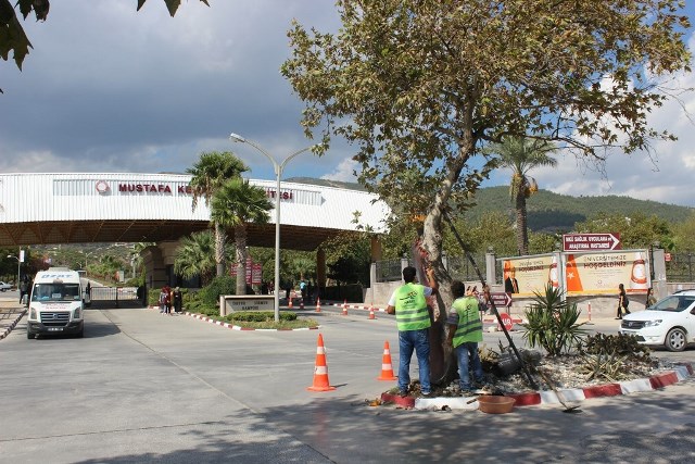HBB Park Bahçe ekipleri tarafından MKÜ Tayfur Sökmen Kampüsü girişindeki çınar ağacına yeniden hayat vermek üzere, çınar gövdesinde oluşan kovuk ölü dokulardan arındırıldı. Temizlenmiş kovuk içerisinde, gövde kurtlarına karşı insektisit ve mantar hastalıklarına karşı fungusit kullanılarak, ağaç, zararlı canlılardan temizlendi. Ağaç gövdesindeki kovuk ve delikler elekli tel ile kapatılarak, hastalıkları önlemek amacıyla özel bir macun karışımı sürüldü. Ağacın sert rüzgarlardan zarar görmemesi ve mukavemetinin sağlanması için de demir bir çubuk ile taç kısmına destek verildi ve ağaç kurtarıldı.
