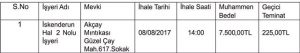 4- Söz konusu işyerine ait bilgiler, ihale saatleri, muhammen bedeli, geçici teminat miktarı aşağıda belirtildiği gibidir.