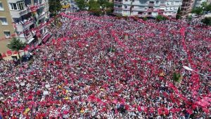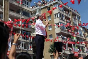 Sizi biraz güldüreyim… İstanbul’da bir arkadaşımız dedi ki: ‘Ben kararsızdım, Erdoğan’a mı oy vereceğim, sana mı? Bugün kararımı verdim.’ ‘Nasıl oldu’ dedim. ‘Senin mitinginde birisi bayıldı’ dedi. ‘Erdoğan’ın mitinginde de birisi bayıldı’ dedi. ‘Aranızdaki davranış farkı’ dedi… Ben demişim ki, farkında değilim… ‘Bir hekim baksın’ demişim. Erdoğan da ‘Kafasına su dökün’ demiş. Her şeyi biliyor ya, onu da biliyor.