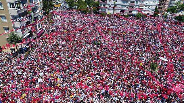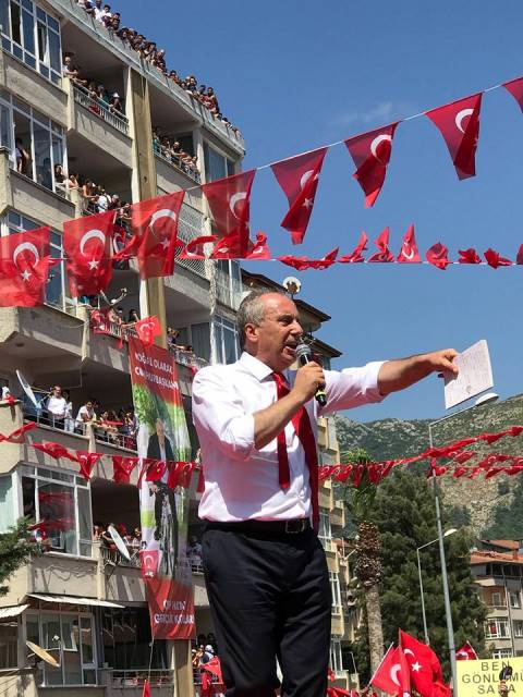 Şimdi ben, Allah’ın izni, milletin isteğiyle 24 Haziran’da Cumhurbaşkanı olacağım, buna inanıyorum. Bu seçimde, ilk kez bu seçimde 81 milyon kazanacak. Yani sadece ben kazanmayacağım. Sadece CHP’liler kazanmayacak. Ak Partili kardeşlerim de kazanacak. Herkes kazanacak. Bu seçimin kaybedeni olmayacak. Ama kazayla Erdoğan kazanırsa, hepimiz kaybedeceğiz, hepimiz. Erdoğan kazanırsa kavga devam edecek. Erdoğan kazanırsa, dünyadaki yalnızlığımız devam edecek. Erdoğan kazanırsa dolar yükselecek. Erdoğan kazanırsa faiz yükselecek. Erdoğan kazanırsa, Suriye’yle kavga etmeye devam edeceğiz. İnce kazanırsa umutlarımız tazelenecek. Geleceğe güvenle bakacağız. Özgür bir Türkiye olacak. Demokrasisi kökleşmiş bir Türkiye olacak. Topraklarından bereket fışkıran bir Türkiye olacak. Üniversitelerinde bilim üretilen bir Türkiye olacak. Arkadaşlar, böyle bir mitingi de ilk kez yapıyorum, her taraf insan. Hangi birinize yetişeyim sizin?