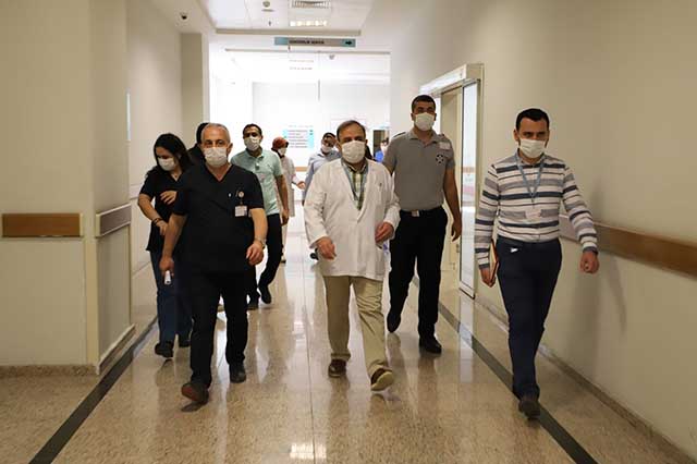 Hatay Devlet Hastanesi Başhekimi Dr. Mahmut Bayrakçı, yeni normal düzeyin ilk günü olan 1 Haziran Pazartesi günü sabah erken saatlerde, hastanenin poliklinik, ameliyat ve diğer bölümlerini ziyaretle incelemelerde bulundu.