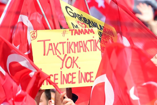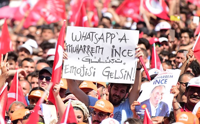 Miting meydanlarının bildik siyaset sloganları yerine, oldukça samimi ve esprili bir dil kullanmayı tercih eden Cumhurbaşkanı Muharrem İnce’nin bu tavrının onu dinlemeye gelen vatandaşlara da yansıyor olması ise dikkat çekiyor. Bu dövizlerden biri, “Taktik Maktik Yok, İNCE İNCE İNCE” olurken, diğer ise “Whatsapp’a Muharrem İnce ‘GÜLÜŞÜ’ emojisi gelsin” oldu.