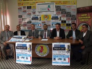 İnşaatçılar ve Boyacılar Odası Başkanı Mehmet Alakuş, dün Hatay Gazeteciler Cemiyeti’nde düzenlediği toplantıda, organizasyon ile ilgili açıklamalarda bulundu. 1. Hatay Yapı İnşaat ve Gayrimenkul Fuarı 03-07 Mayıs 2017 tarihinde kapılarını ziyaretçilere açmayı, üretici ve tüketici firmaları bir araya getirerek büyük Pazar alanı oluşturmayı hedeflediklerini söyleyen Alakuş, Antakya’da otogar karşısı olan 25 bin metrekarelik alanda gerçekleştirilecek olan Hatay Yapı İnşaat ve Gayrimenkul Fuarının 81 ilden katılımcılarını beklediğini bildirdi.