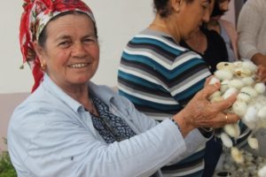 “Mağaracık İpek Evi’nden sonra Yaylıca İpek Evi’ndeyiz. Bu yıl ilk defa burada ipek kozası yetiştiriciliği ve dokuma kurslarını başlattık. Buradaki kadın arkadaşlarımızla, kozanın, tırtılından beş evresini tamamlayana kadar çalıştık. Bugün de hasadı gerçekleştirmiş bulunuyoruz. Hasadı gerçekleştir-dikten sonra kozaları ayıklıyoruz. Kozayı temizleyip ayıkladıktan sonra boğdurma işlemi gerçekleştiri-lecektir. Boğdurma işleminden sonra, bu işin ipe dönmesiyle ilgili iplik çekme işlemini gerçekleştireceğiz. İlk defa bu deneyimi burada yaşadık. Çok mutluyuz, gururluyuz. İlk defa bu bölgede denememize rağmen verim alabildik. Buradaki kadın arkadaşlarımızın başarısıyla ilgili olarak buraya gelip onlara eşlik etmek bizlere keyif veriyor. Burada iyi başlangıç yaptık. Dilerim ki önümüzdeki dönede burası bölge kadınının önemli bir geçim kapısı olur.”