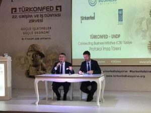 karşı hazırlayacağı platform olan CBi Türkiye’nin imza töreni de yapıldı. Özel sektörün ihtiyaç ve kapasitesini belirleyerek, iş dünyasını afet ve acil durumlar karşısında güçlendirmek, bilgi paylaşımını artırmak, işletmeleri dirençli kılmak, afet anında özel sektörün etkilenen bölgelere katkısını artırabilmek için çalışacak olan CBi Türkiye’nin imza töreni, TÜRKONFED Başkanı Orhan Turan ve Birleşmiş Milletler (BM) Mukim Koordinatörü ve UNDP Mukim Temsilcisi Irena Vojackova Sollorano’nun katılımı ile gerçekleştirildi.