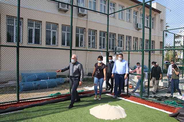 “Kentimizin farklı yerlerine yapılmakta olan 10 adet halı saha ve 5 adet basketbol sahasının yapım işi hızla devam ediyor. Bu çerçevede, Barbaros Mesleki ve Teknik Anadolu Lisesi içerinde yapımı devam eden basketbol ve halı saha projesi yapım çalışmalarını yerinde inceledik. İlçemize, yeni ve modern spor tesisleri kazandırmaya devam edeceğiz.” -Mehmet Durmaz-