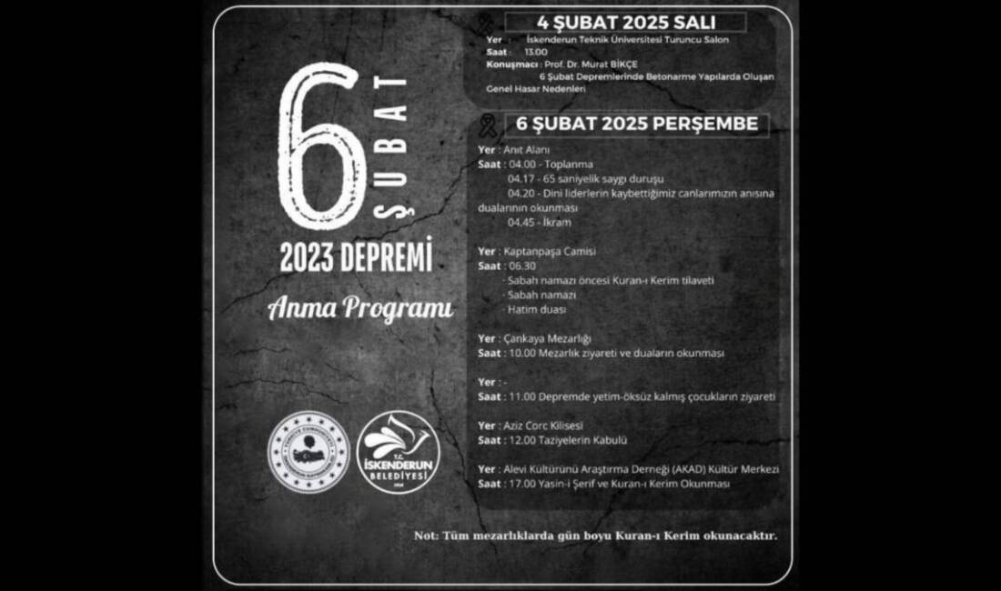 6 Şubat 2025 Perşembe günü ise sabahın erken saatlerinden itibaren farklı noktalarda anma programları gerçekleştirilecek.