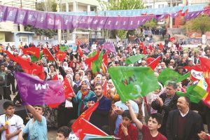 Yaklaşan referandum öncesinde mitinglerine ve açık hava toplantılarına hız veren HDP’nin bu anlamdaki son adresi, İskenderun oldu. Nevruz Meydanı’nda düzenlenen mitinge HDP İzmir Milletvekili Müslüm Doğan konuşmacı olarak katılırken, miting alanını yüzlerce vatandaş, ellerindeki rengarenk ‘HAYIR bayraklarıyla doldurdu. Şarkılar eşliğinde çekilen halayların ardından, HDP İskenderun İlçe Eşbaşkanları Ahmet Çahan ve Aysel Eşiyok açılış konuşmasını yaptı.
