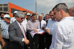 Vali Rahmi Doğan ile sanayiciler, İskenderun 2. Organize Sanayi Bölgesi’nde incelemelerde bulundu. 27 Ağustos Salı günü saat 11.00’de, İskenderun 2. Organize Sanayi Bölgesi firma yetkilileri ile birlikte İskenderun 2. OSB’de incelemelerde bulunan Vali Rahmi Doğan, OSB kurulum çalışmalarında ulaşılan nokta hakkında bilgi aldı. İncelemelerin ardından Vali Doğan bir de toplantı gerçekleştirdi. Toplantıya; İskenderun Belediye Başkanı Fatih Tosyalı, DSİ 6. Bölge Müdürü Abdul Kasım Sarımehmet, Karayolları 5. Bölge Müdür Vekili Turan Yılmaz, TCDD 6. Bölge Müdürü Oğuz Saygılı, AKSAGAZ Bölge Müdürü Halit Demir, İskenderun 1. OSB Yönetim Kurulu Başkanı Ayhan Tosyalı, iş insanları Recep Atakaş, Yakup Bozatlı, Abdullah Bozatlı ve Kurum İl Müdürleri katıldı. -Cemil Yıldız-