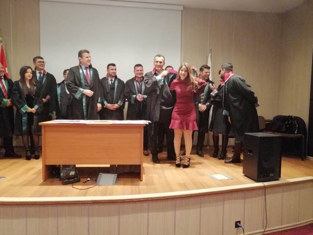 Muhammed Münircan Özdemir’e cübbesini Av. Cemay İnan, Mehmet Akif Yalçın’a cübbesini Av. Mehmet Ali Çapar, Sabahattin Gökpınar’a cübbesini Av. Naim Gökpınar, Zeynep Derya Bahar’a cübbesini TBB Delegemiz Av. Mehmet Vehbi Debooğlu, Seçil Arslan’a cübbesini TBB Delegemiz Av. Murat Güler giydirdi. Törene; Baro Başkan Yardımcısı Av. Sevinç Çakıcı, Yönetim Kurulu Üyeleri: Av. Hüseyin Derin, Av. Mehmet Bilgili, Sayman: Av. Mehmet Ezer ve meslektaşlar katıldı. Baro Başkanı Av. Ekrem Dönmez, ruhsat almaya hak kazanarak yemin eden ve cübbe giyen 5 yeni genç meslektaşını kutladı, başarı diledi. -Selvi Günay-