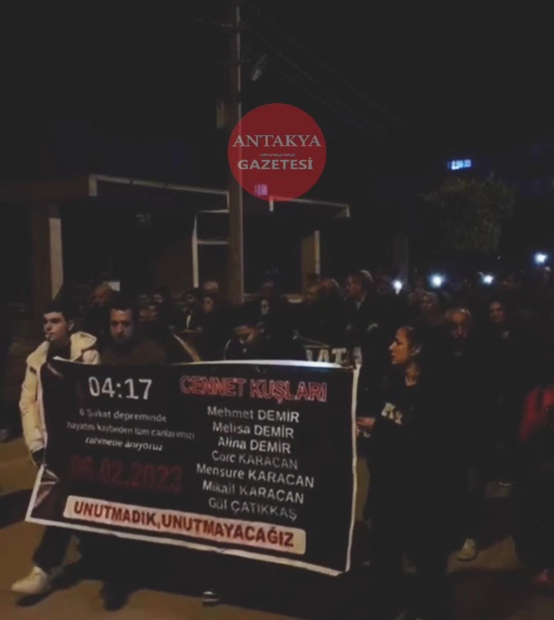 Anma etkinlikleri kapsamında İskenderun Mustafa Kemal Mahallesi’nde düzenlenen yürüyüşte, depremde yaşamını yitiren vatandaşlar için karanfiller taşındı, adalet ve dayanışma vurgusu yapıldı. “Unutmadık, Unutturmayacağız” sloganlarının öne çıktığı yürüyüşte duygusal anlar yaşandı.