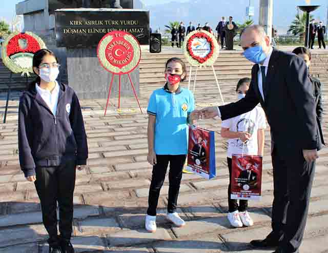 İskenderun’da saat 09.00’da Atatürk Anıtı’nda icra edilen tören esnasında; İlçe Kaymakamı İskender Yönden, Garnizon Komutanı Tuğgeneral Alparslan Kılınç ve Belediye Başkanı Fatih Tosyalı tarafından Ata’mızın manevi huzuruna çelenk sunulması akabinde, Cumhuriyetimizin kurucusu ve milli mücadelemizin büyük önderi Mustafa Kemal Atatürk’ün aziz hatırasına binaen 2 dakika saygı duruşunda bulunularak, ardından hep birlikte İstiklal Marşımız okundu.