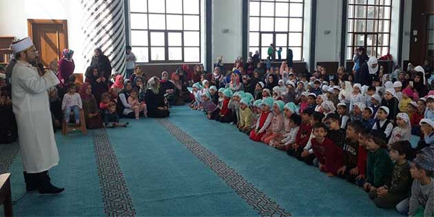 İlçe Müftüsü Şekerci’nin konuşması ile başlayan etkinlikte, minik öğrencilere, Camii İmam Hatibi Turgut Karaoğulları tarafından cemaat halinde temsili namaz kıldırıldı. Namazdan sonra, minik çocukların okuduğu salavat ve sureler ile devam eden etkinliğin sonunda hatıra fotoğrafı çekildi, minik öğrencilere çeşitli hediyeler dağıtıldı. -Cemil Yıldız-