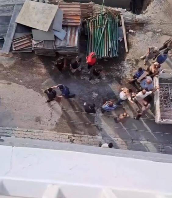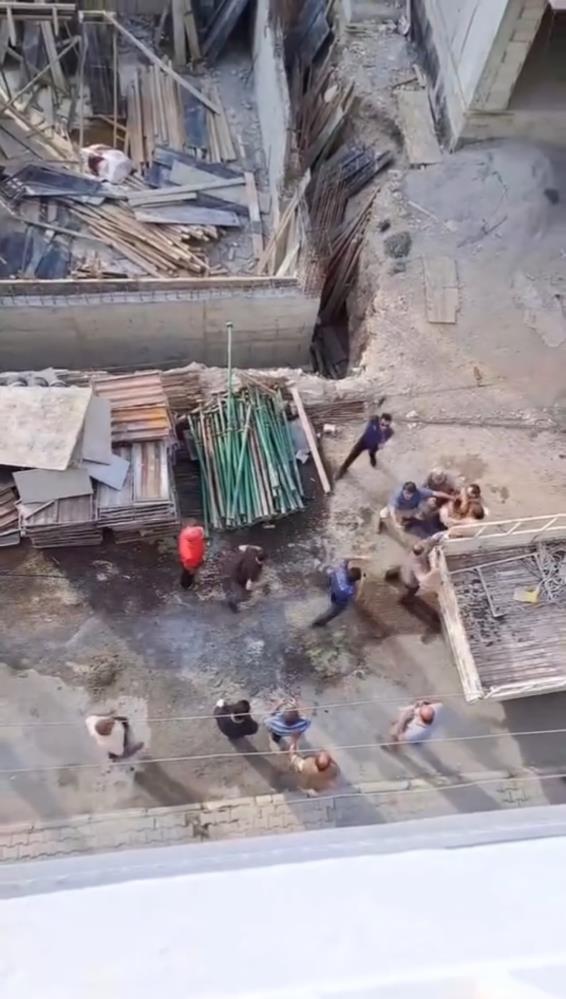 Şantiyede yaşanan arbede anları çevredeki bir vatandaş tarafından cep telefonu kamerasıyla kaydedildi. Görüntülerde, tarafların birbirine saldırdığı ve polisin müdahale ettiği anlar net şekilde görülüyor.