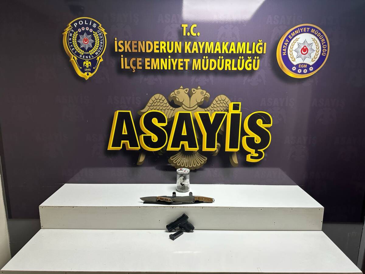 Şüphelilerin ikametlerinde yapılan aramada 1 adet ruhsatsız tabanca, 2 adet bıçak, 5 gram esrar ve 2 adet yeşil reçeteye tabi hap ele geçirildi. Emniyetteki işlemlerinin ardından adliyeye sevk edilen şüphelilerden E.E., S.B. ve S.Ö. adli kontrol şartıyla serbest bırakılırken, İ.O. tutuklanarak cezaevine gönderildi.