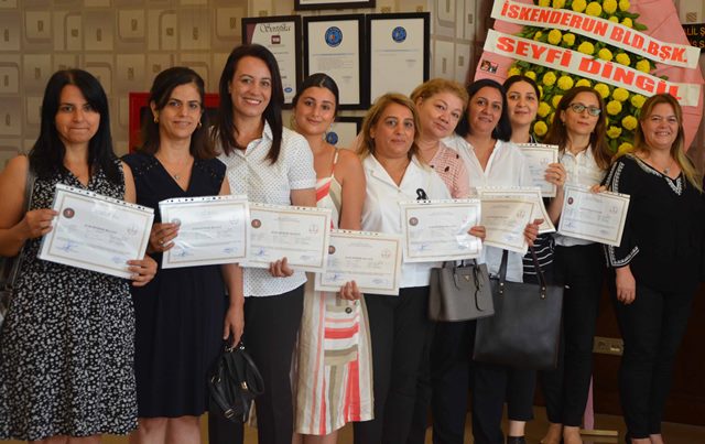 Yapılan konuşmaların ardından; Hatay Vali Yardımcısı Nursal Çakıroğlu, İskenderun Kaymakamı Recep Soytürk, Hatay Valiliği SODES Proje Brim Sorumlusu Mehmet Koca ve İskenderun İş-Kur Müdürü Mehmet Yüksel tarafından 17 kursiyere belgeleri verildi. -Mutlu Yanık-