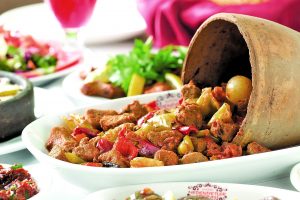 Yaklaşık 150 çeşit yemeği misafirleriyle paylaşan Hatay Medeniyetler Sofrası’nda her yemeğin sunumu siparişine göre değişim gösteriyor. Kimisi tuzun, kimisi testinin, kimisi de güvecin içerisinde geliyor. Burak Özdemir’in ifadesinde de çokça yer bulduğu gibi… ‘Önce göz, sonra da mide doyuyor.’