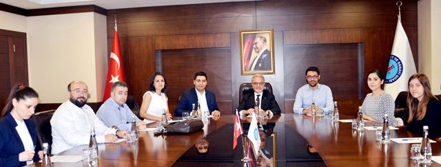 İskenderun Teknik Üniversitesi Sosyal ve Ekonomik Araştırmalar Uygulama ve Araştırma Merkezi yöneticilerinin İTSO ziyaretine; İSTE TTO Koordinatörü Araştırma Görevlisi Seçkin Dilek, İSTE Sosyal ve Ekonomik Araştırmalar Uygulama ve Araştırma Merkezinden, Araştırma Merkezi Müdürü H.Ekrem Cunedioğlu, Araştırma Görevlileri Zafer Bozyer, Emine Bozoklar ve Proje Destek Birimi Uzmanı Hakan Eryüzlü katılırken, İTSO Başkanı Levent Hakkı Yılmaz ile gerçekleşen görüşmede İSTE ile İTSO arasında gerçekleştirilmesi düşünülen projeler ile ilgili sunum yapıldı.