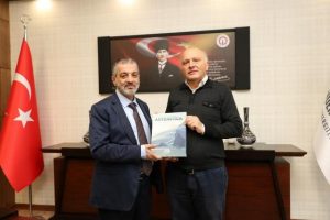 Katılımlarından ve vermiş olduğu bilgilerden dolayı Prof. Dr. Bayram Öztürk’e teşekkür eden İSTE Rektörü Prof. Dr. Türkay Dereli, konuk bilim adamına günün anısına hediye takdim ederken, Öztürk de Antarktika’yı ayrıntılarıyla anlatan kendi kitabını İSTE Rektörü Prof. Dr. Dereli’ye hediye etti. -Tamer Yazar-