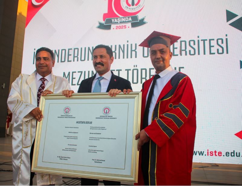 İSTE Rektörü Prof. Dr. Mehmet Duruel de mezunları tebrik ederek, “Gençler, yalnızca meslek sahibi olmanız değil, aynı zamanda yaşadığınız topluma, ülkenize ve insanlığa anlamlı katkılar sunmanız önemli. Bilgiyi ve erdemi birbirinden ayırmadan yolunuza devam edin.” diye konuştu.