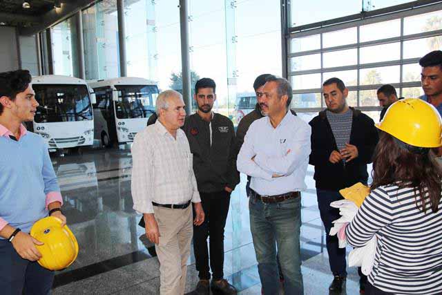 İSTE İskenderun Meslek Yüksekokulu Otomotiv Teknolojisi Programı’ndan mezun olan Eğitim Uzmanı Bülent Köprülü ve yine İSTE-İMYO Otomotiv Teknolojisi mezunlarından, Ar-Ge Proje Kontrol Birimi’nden Ufuk Tan ve Trim hattında görev yapan Veys Harun Temizkan, öğrencilerle yakından ilgilendiler. Eğitim Uzmanı Bülent Köprülü’nün eğitim salonunda yapmış olduğu TEMSA ve sektör hakkındaki kısa sunum ve tanıtımdan sonra ders uygulaması niteliğinde geçen teknik gezide, Ar-Ge, üretim ve kullanım safhasına kadar geçen süreçler incelendi.