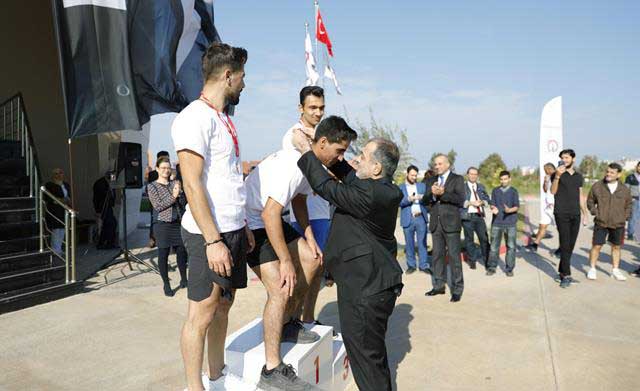 Tüm yarışmacıları tebrik eden ve bu yıl ilk defa yapılan “Atatürk Koşusu’nun” geleneksel hale getirilmesini umut ettiğini ifade eden Rektör Prof. Dr. Türkay Dereli, birinci olan yarışmacılara madalyalarını taktı.