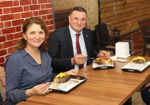 Hatay Büyükşehir Belediye Başkanı Lütfü Savaş, bugün başlayacak olan Uluslararası Fuar’ın onur konuğu ve davetlisi olarak, dün sabah 04.00’te İzmir’e hareketinden birkaç saat önce, İstanbul ve İzmir gibi turistlerin yoğun olduğu büyük şehirlerde tercih edilen “Kumpir” yemeğinden yedi. Eşi Prof. Dr. Nazan Savaş ile birlikte, Çarşamba akşamı Sümerler Mahallesi’ne giden ve “Makbule ve Hüseyin Yiğitbaşı” […]