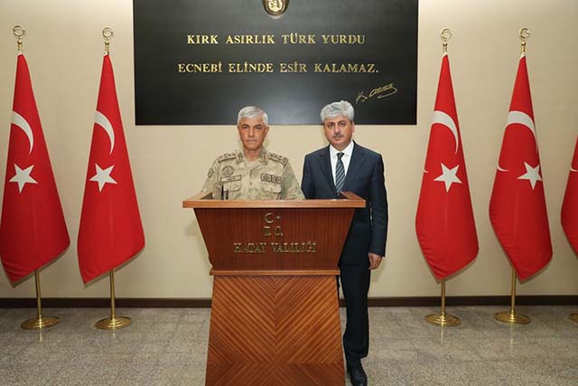 Jandarma Genel Komutanı Orgeneral Arif Çetin, Perşembe günü ilimizdeydi. Şırnak’ın Silopi ilçesinde, bölücü terör örgütü mensuplarıyla girilen çatışmada Şehit düşen Antakyalı Jandarma Uzman Çavuş Mehmet Uçar’ın cenaze törenine katılmak üzere Hatay’a gelen Jandarma Genel Komutanı Org. Arif Çetin, öğleden sonra da Vali Rahmi Doğan’ı makamında ziyaret etti. Gerçekleşen ziyarette, Orgeneral Çetin’e; Dışişleri Bakan Yardımcısı Yavuz Selim Kıran, Adana Jandarma Bölge Komutanı Tuğg. Yusuf Ziyaeddin Cavlak, İl Jandarma Komutanı J. Alb. Uğur Ertekin, 26. Dönem Hatay Milletvekili Fevzi Şanverdi ve Dışişleri Bakanlığı Hatay Temsilcisi Büyükelçi Serdar Cengiz de eşlik etti.
