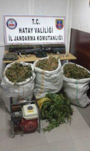 1416 kök kenevir bitkisi, 47 kg kubar esrar maddesi, 1 adet ruhsatsız av tüfeği ve 25 adet av tüfeği fişeği ile 1 adet jeneratörlü su motoru ele geçirildi.