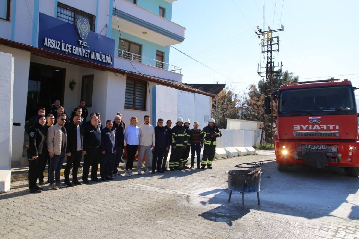 HBB İtfaiye Dairesi Başkanlığı ekipleri, Arsuz İlçe Jandarma ve Emniyet Müdürlüğü personeline yönelik uygulamalı eğitim programı gerçekleştirdi. Eğitimlerde, yangın türleri, doğru müdahale yöntemleri, yangın sırasında sergilenmesi gereken davranışlar ve yangın sonrası iyileştirme çalışmaları gibi hayati bilgiler paylaşıldı.
