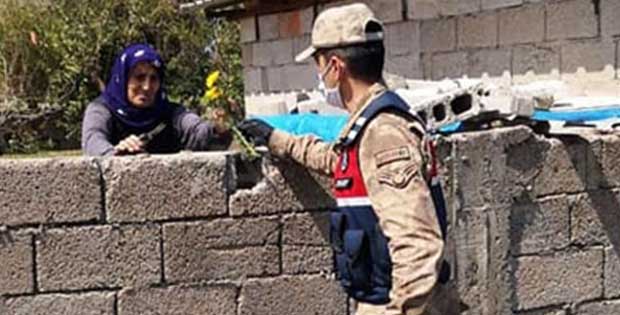 Arsuz ilçesinde yeni tip koronavirüs (Covid-19) tedbirleri kapsamında dışarı çıkamayan yaşlı vatandaşlara, Jandarma, doğadan topladığı çiçekleri verdi.