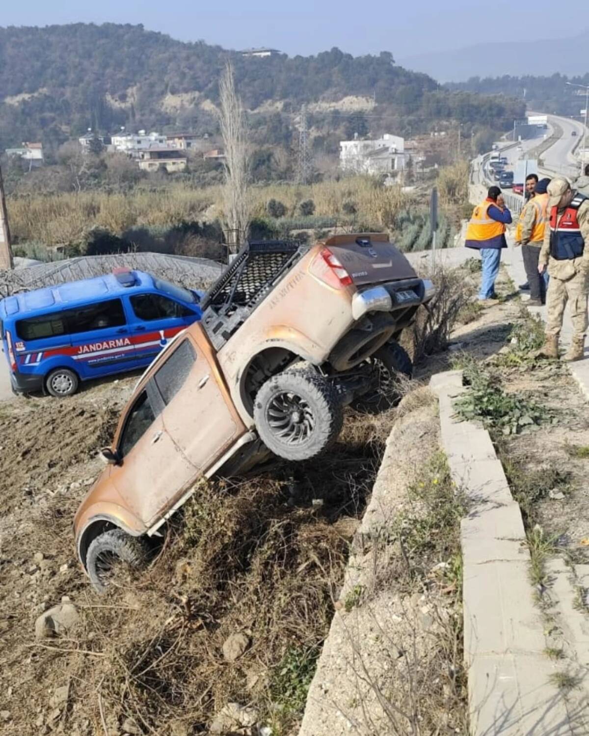 Bilinmeyen nedenle iki aracın çarpışması sonucunda araçlardan jeep kenardaki ihate duvarının üzerinden aşağıya doğru yarım devrilme yaşadı. Kazada can kaybı yada yaralanma olmadı.