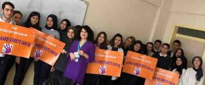İskenderun İlçe Sağlık Müdürlüğü, “Gönüllü Genç Sağlık Liderleriyle Birlikte Kadına Yönelik Şiddete Hayır” kapsamında farkındalığın oluşturulması ve toplum bilincinin artırılması amacıyla, Akdeniz Mesleki ve Teknik Anadolu Lisesi öğrencilerine eğitim verdi. Eğitimin ardından, öğrenciler, ellerinde bez ve dövizlerle kadına şiddeti kınayan mesajlar verdi. -Yusuf Cemil Karaçay-