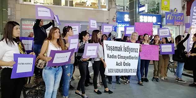 Bir grup kadın, Pazartesi akşamı Antakya Saray Caddesi’nde “Kadın Cinayetlerini Acil Önle” temalı bir basın açıklaması gerçekleştirdi. “Hatay, Kadınlar Birlikte Güçlü” Platformu tarafından gerçekleştirilen “Kadın Cinayetlerini Acil Önle, Yaşamak İstiyoruz” konulu basın açıklamasında, etkinliğe katılanlar, hep bir ağızdan “kadın cinayetlerine karşı yaşamak istiyoruz” ve “Kadınların yaşam hakkına dokunmayın” mesajı verdi. Basın açıklamasına katılan kadınların ellerinde taşıdığı pankartlardan bazıları da şöyle:
